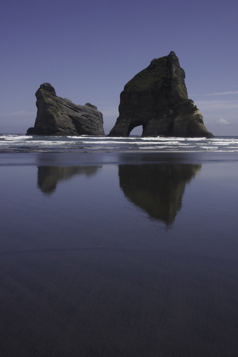 Then we went on to the remarkable Museum of Wearable Art and companion Motor Museum in Nelson, over the big Takaka Hill with its strange limestone rocks and caves, and on north as far as Farewell Spit. We spent a magical evening and day (in that order) at Wharariki Beach, and another grand day going to Totaranui Beach in Abel Tasman National Park and a huge freshwater spring at Te Waikoropupu.